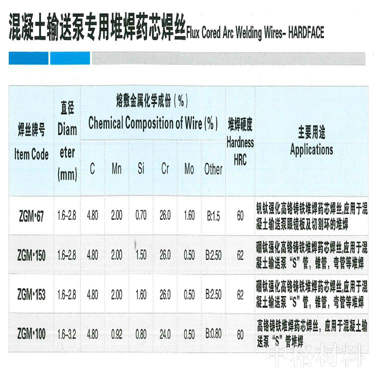 產(chǎn)品分類:混凝土輸送泵專用堆焊藥芯焊絲